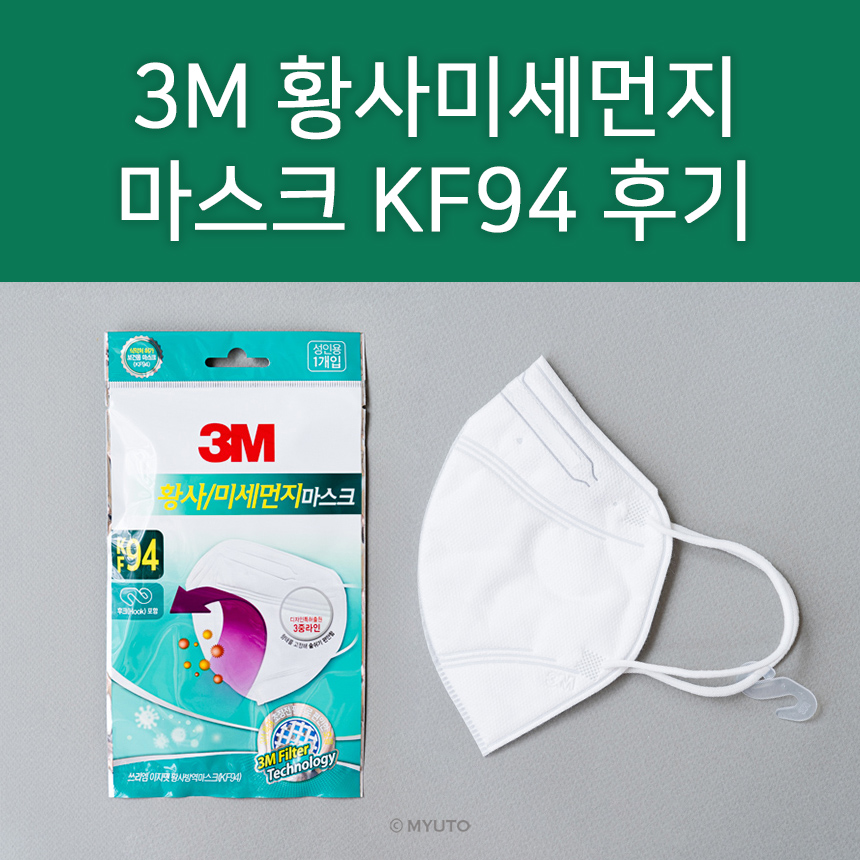 왼쪽면 아래에는 3M이라는 각인이, 오른쪽 아래에는 KF94와 제조번호인지 알 수 없는 숫자들이 적혀있어요. 이런 부분 때문에 뭔가 일상적인 용도의 마스크라기 보다는 공사나 작업현장에서 쓰는 마스크 같은 느낌이 나더라구요ㅎㅎ