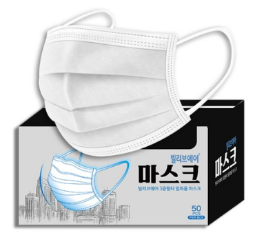 - 3중필터 일회용마스크 : 코, 볼, 턱부분이 고정될 수 있도록 입체적으로 제작되어 편리하게 사용할 수 있습니다.