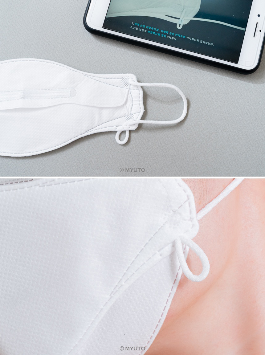 실측사이즈는 위에서 확인하시구요, 제가 써보니 끈조절 안하고 썼을 땐 기본적으로 성인남녀 누구나 쓸 수있는 평균사이즈의 대형마스크 같았고, 끈 조절을 하니 성인여자인 제게 잘 밀착이 되었어요. 조절 후 끈 길이도 그대로 잘 유지가 되구요. 처음 꺼냈을 때 살짝 소독약 냄새같은 게 좀 났는데 (뉴네퓨어도 이런 향이 나더라구요?) 기분 나쁜 향은 아니지만 독특해서 요 부분도 알려드려요. 개인적으로 추가구매 의사는 없지만 저렴하게 구매했다면 무난히 하루정도는 쓸만한 마스크 였습니다!