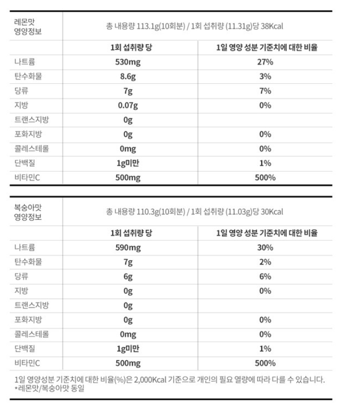 링티는 레몬맛/복숭아맛 두가지로 출시되어