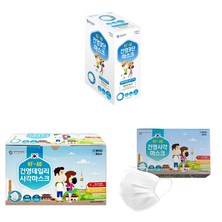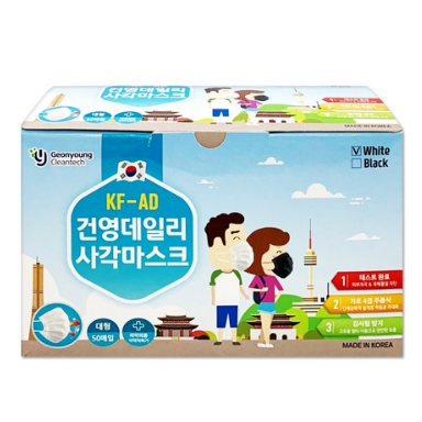 건영크린텍 사각 비말 차단 마스크 KF-AD 성인용 50매(식약처인증)