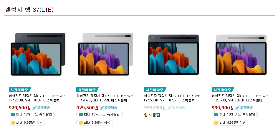 LTE모델은 전부 일시품절입니다. ㄷㄷ