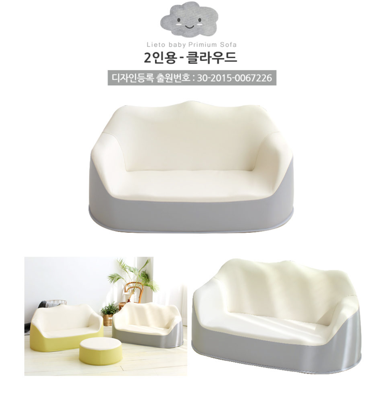 리에또 베이비 프리미엄 2인용 쇼파, 그레이(클라우드)