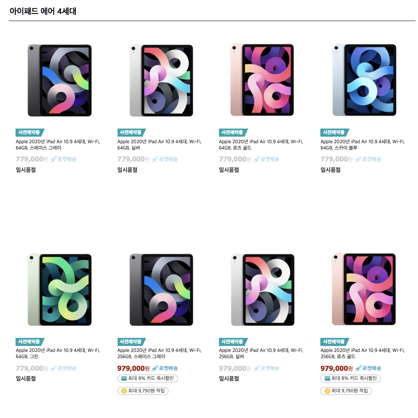 | 아이패드 에어 4세대 사전예약 22일 구매링크 좌표 - 와이파이 셀룰러 가격비교 삼성카드 할인 (0) | 2020.10.22 |