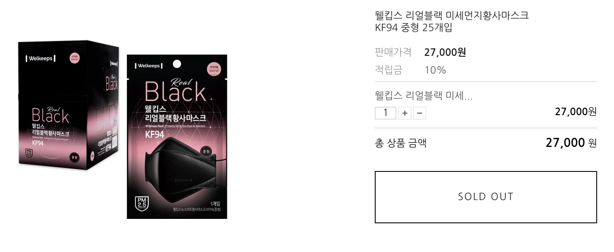 웰킵스 리얼블랙 황사마스크 중형 KF94