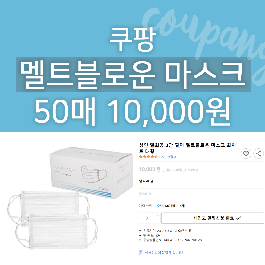 쿠팡 멜트블로운 일회용 마스크 50매 10,000원 : 이번 주는 일회용마스크가 풀리나봐요!